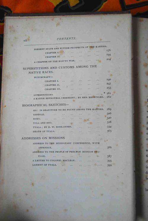 Reminiscences of Kaffir Life, history & other papers by Hon Charles Brownlee (1896 1st edition) Lovedale South Africa. Title page and contents page loose. Foxing to pages. Postage is R50.00.