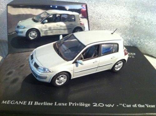 2002 Renault Megane II Berline Luxe Priviledge 2.0 16valve. "Car of the year 2003" Eligor 1/43 diecast model car. As new in display case. Display case slightly worn.