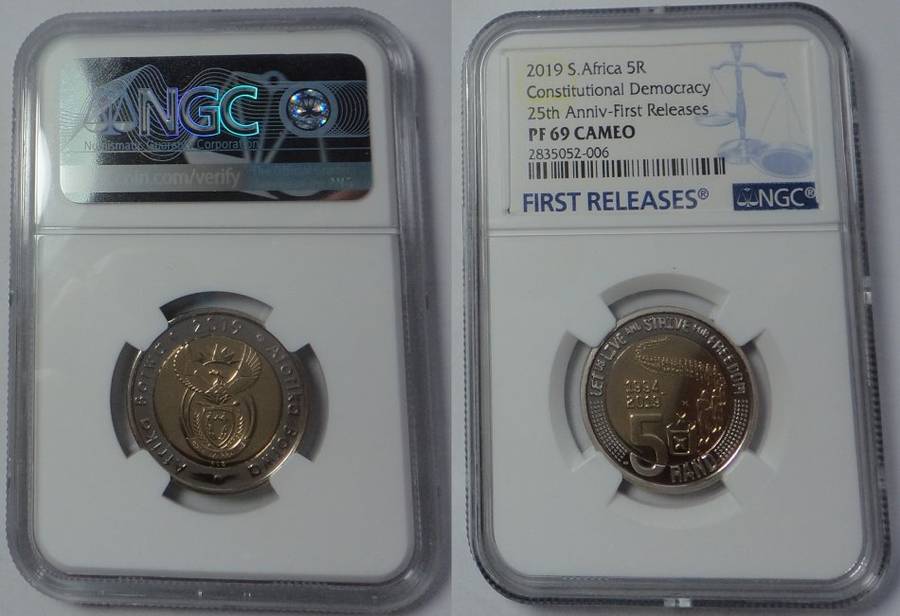 Rep. of S. Africa: Constitutional Democracy R5 of 2019, NGC PF 69 Cameo (First Releases)