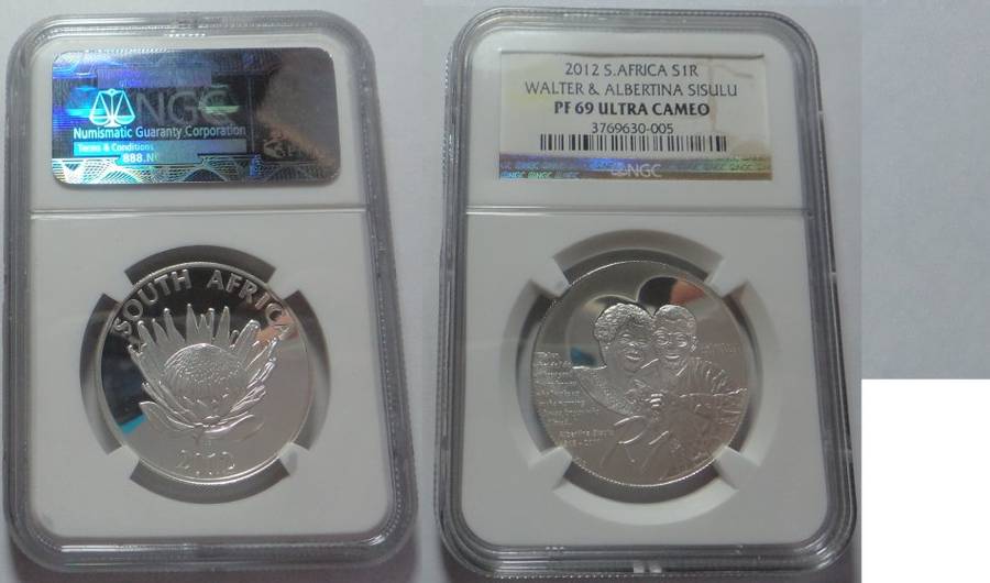 Rep. of South Africa: Silver R1 of 2012 (Sisulus) NGC graded PF 69 Ultra Cameo