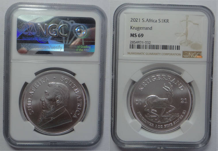 Rep. of South Africa: Silver Krugerrand 2021, NGC graded MS 69