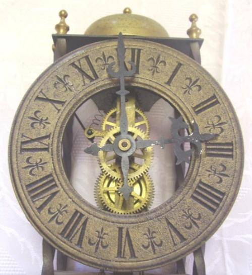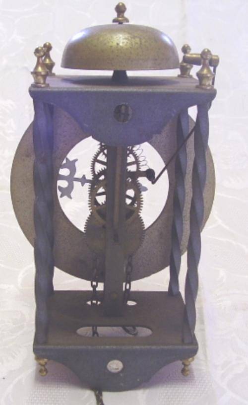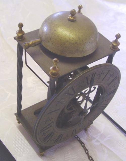 **** Lantern Wall Clock **** Needs attention - please bid accordingly. This is a replica Lantern clock and not an antique. Please note that this clock gains quite a lot of time and would accordingly need adjustment, possibly a longer pendulum shaft. It is also very sensitive and if not aligned properly on the wall it only runs for a short while. It would thus need looking at by someone who knows clocks. The the bell strikes on the hour. It is driven by one weight. Please ask questions if unsure about anything before bidding. The clock is 220mm x 140mm and 90mm deep. The small plaque at the bottom reads "Tempus Fugit". Please note that clocks do not travel well in the postal system. I do wrap and pack the clocks very well, but I cannot be held responsible for drop damage in transit. âºâºâº Signed for postage R40.âââ