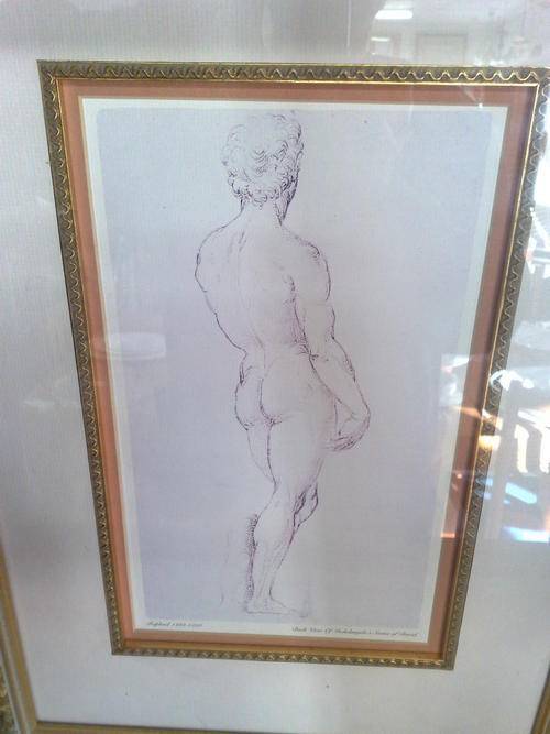 SKETCH IS OF THE BACK VIEW OF MICHELANGELO'S STATUE OF DAVID