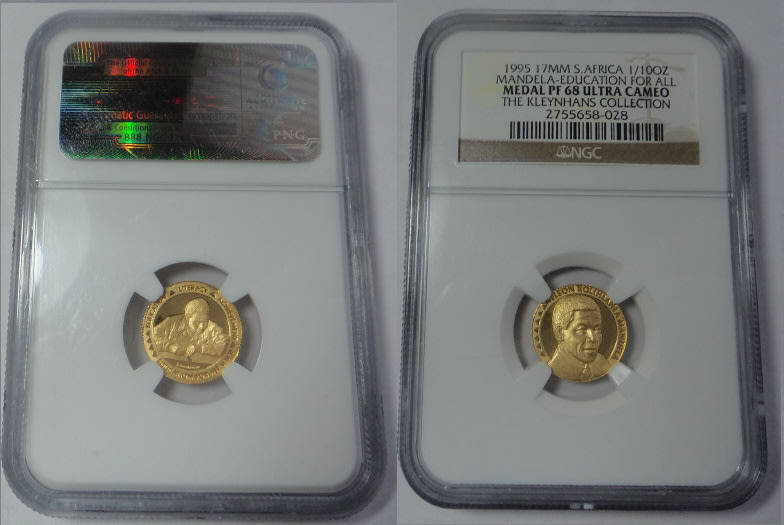 Republic of South Africa: 1/10th OZ GOLD R1 of 1995 (Mandela / Education) NGC PF68 Ultra Cameo