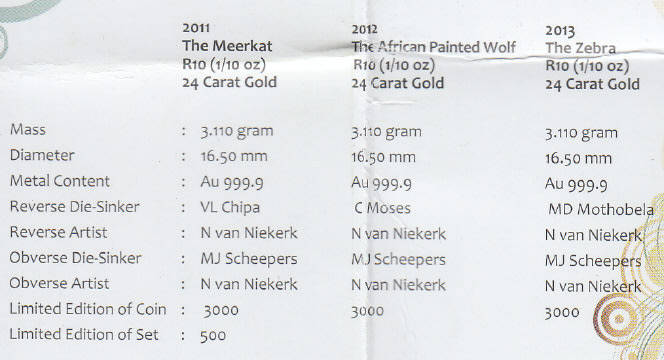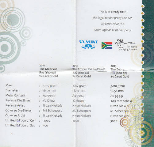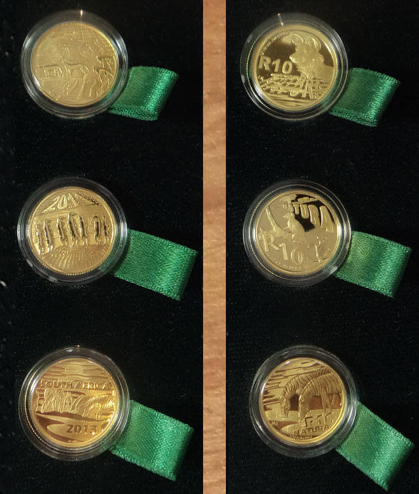 Republic of South Africa: 2011/2012/2013 GOLD 1/10th OZ R10 Natura Proof Set