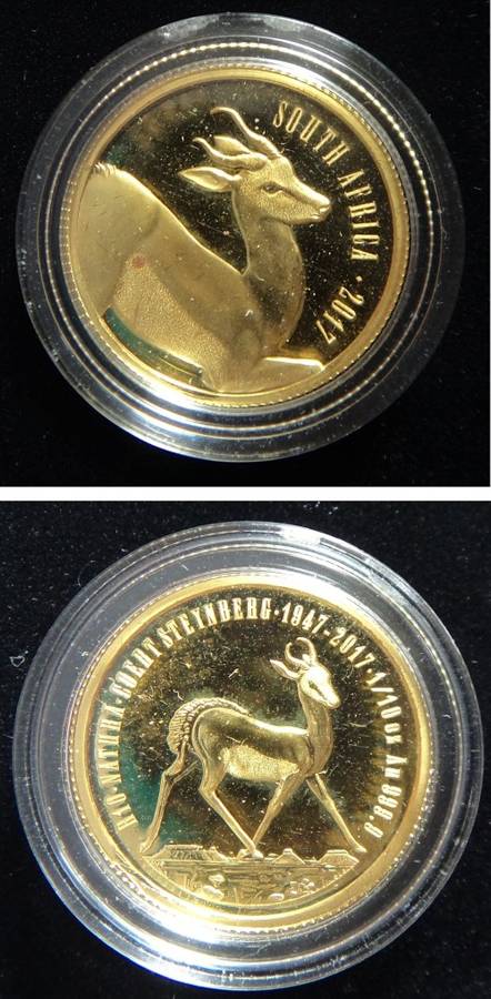 This beautiful gold coin commemorates the Springbok designs on our coins from 1947 to 2017