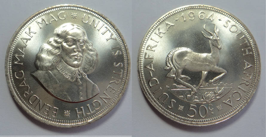 Republic of South Africa: Crown (Silver 50c) of 1964 (Proof Condition)