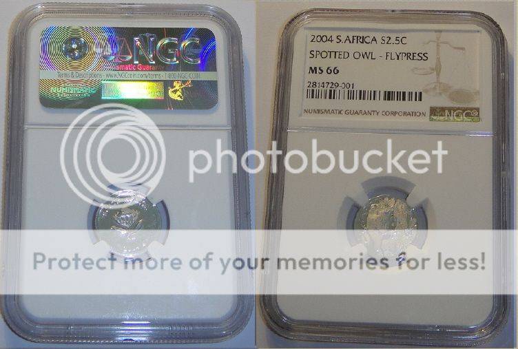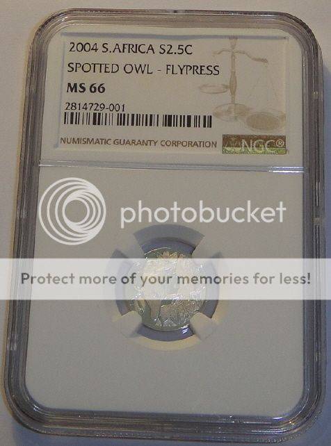 Republic of South Africa : FLYPRESS Tickey of 2004: The Spotted Owl : NGC graded MS66
