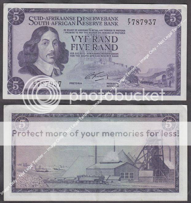 Republic of South Africa : G Rissik : Five Rand Bank Note of 1966