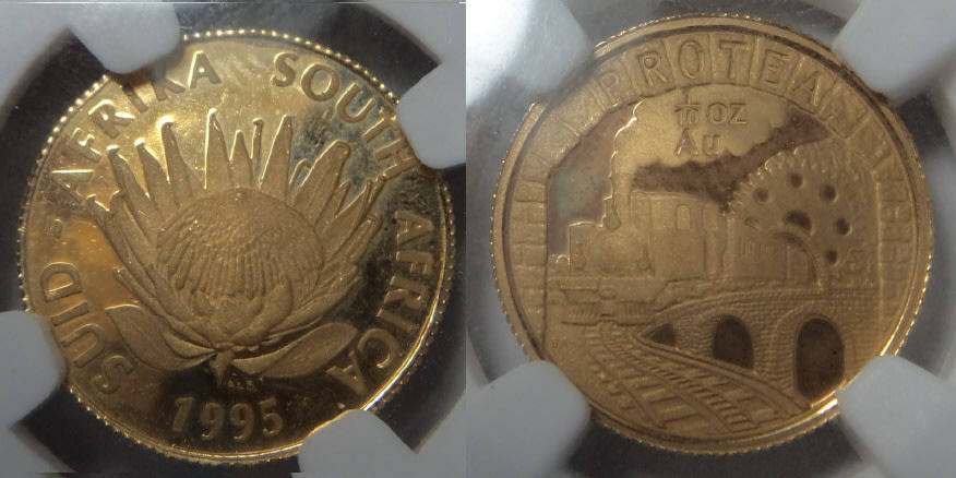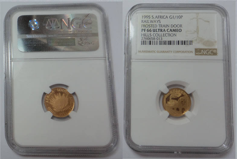 Republic of South Africa: GOLD 1/10 OZ 1995 (Railways - Frosted Door): NGC graded PF 66 Ultra Cameo