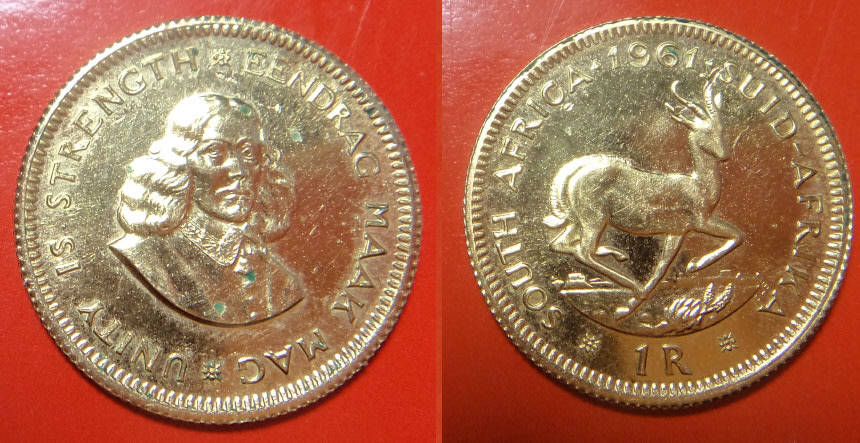Republic of South Africa: GOLD R1 of 1961 (Our first R1 coin)