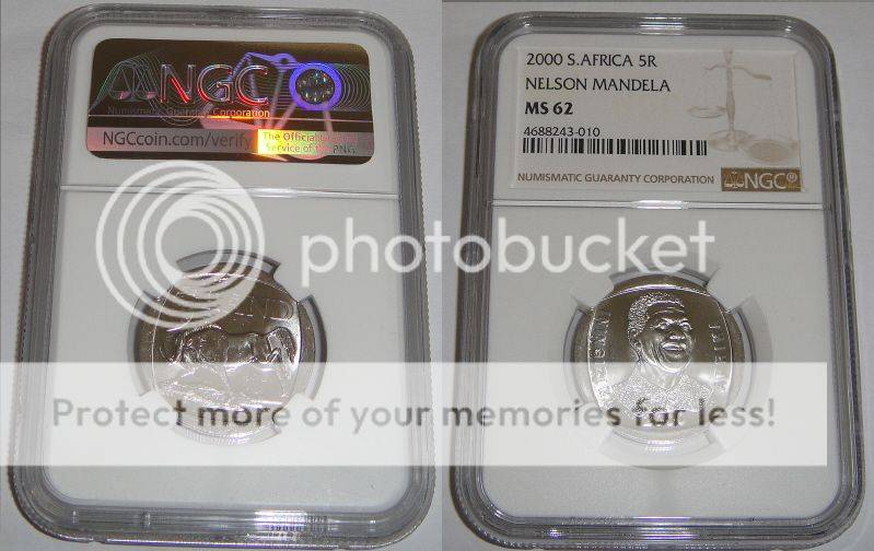 Republic of South Africa : Nelson Mandela R5 of 2000 : NGC graded MS62