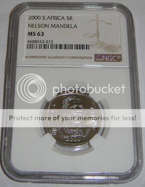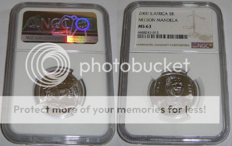 Republic of South Africa : Nelson Mandela R5 of 2000 : NGC graded MS63