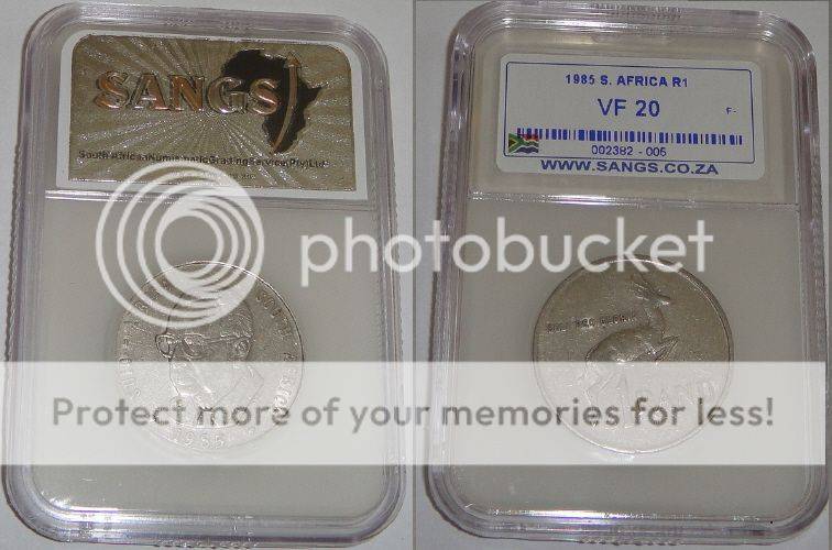 Republic of South Africa : Nickel R1 of 1985 : Sangs graded VF20