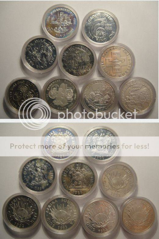 Republic of South Africa: Nine COMMEMORATIVE SILVER R1 coins (bid per coin to take all 9)