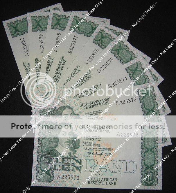 Republic of South Africa: Nine Consecutive TW de Jongh C48 R10 Notes