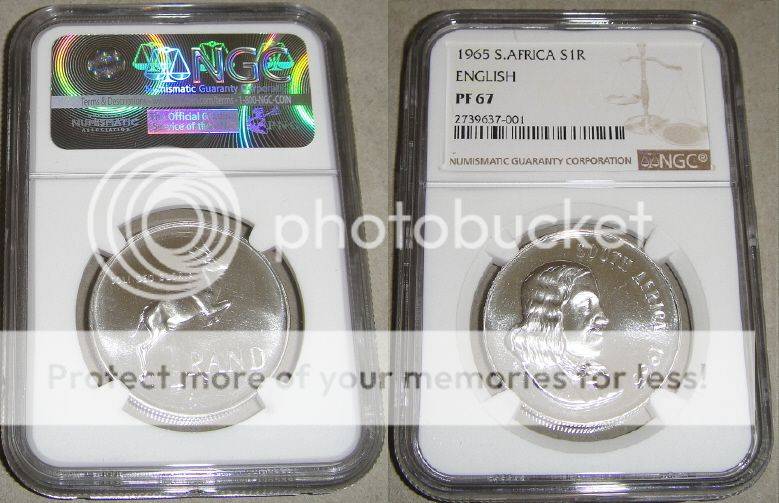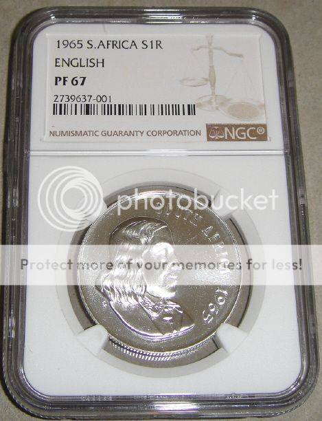 Republic of South Africa : One Rand of 1965 (English) : NGC graded PF67