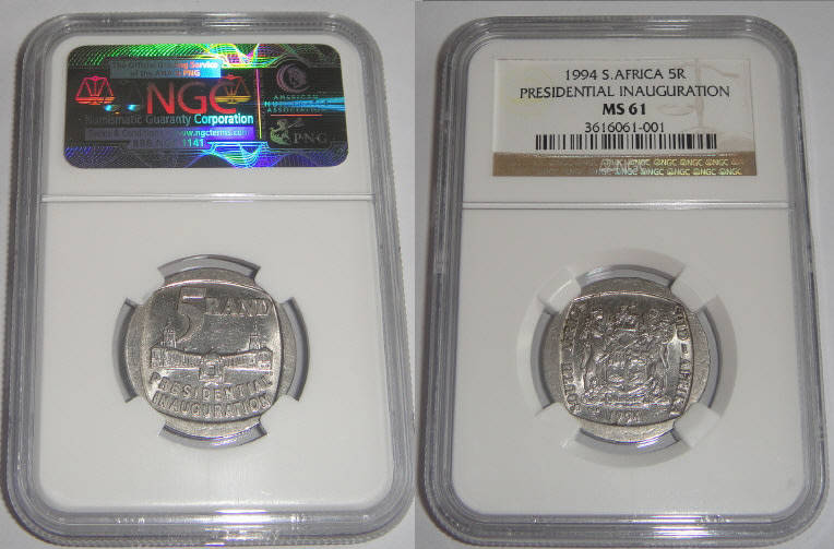Republic of South Africa : Presidential Inauguration R5 of 1994: NGC graded MS 61