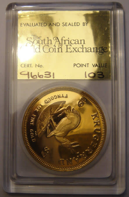 Republic of South Africa: PROOF 1 Oz GOLD KRUGERRAND of 1987 (SAGCE 103 Points)