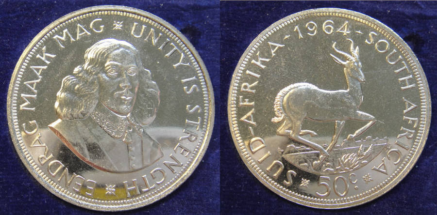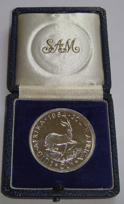 Republic of South Africa : Proof Crown (Silver 50c) of 1964 in original SA Mint Box