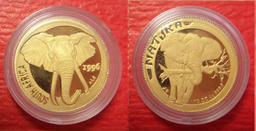 Republic of South Africa: Proof GOLD 1/10 NATURA of 1996 (The Elephant)