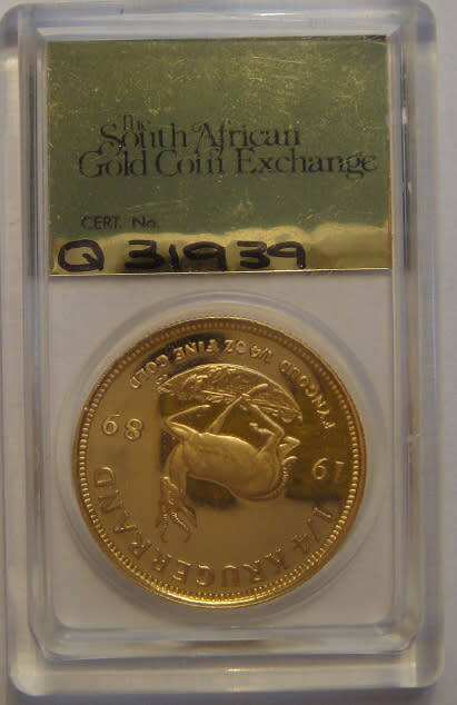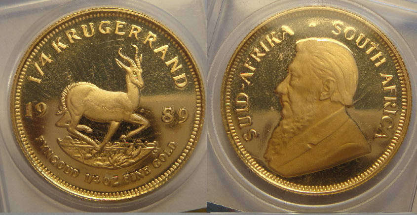 Republic of South Africa : PROOF ¼ Oz GOLD KRUGERRAND of 1989