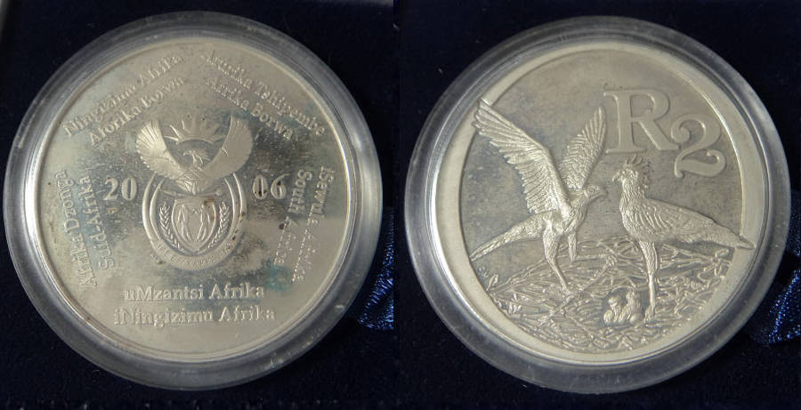 Republic of South Africa: Proof Silver R2 Crown of 2006 (Secretary Bird)