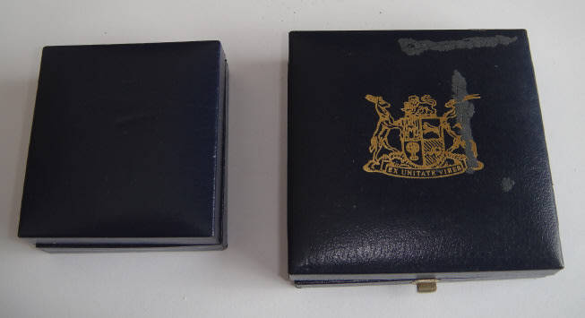 I have two boxed coins available. The boxes are different and the outside of the one box shows some age marks.