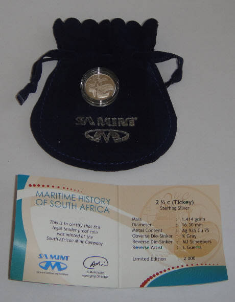 Republic of South Africa: Silver Proof Tickey (2.5c) of 2009 (Maritime History)