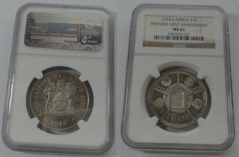Republic of South Africa: Silver R1 of 1974: NGC MS 61