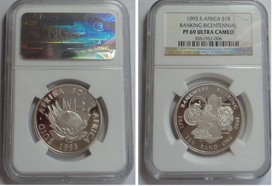 Republic of South Africa: Silver R1 of 1993 (Banking) NGC PF 69 Ultra Cameo