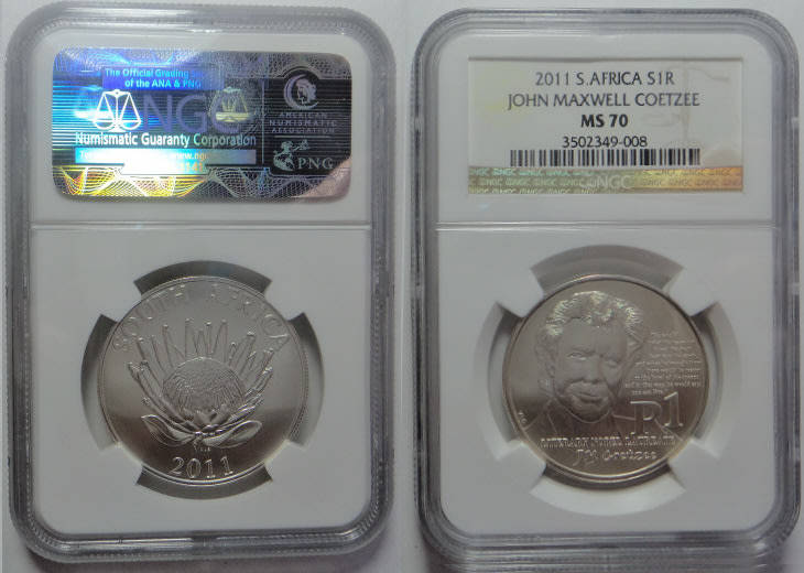 Republic of South Africa: Silver R1 of 2011 (John Maxwell Coetzee): NGC Graded MS70