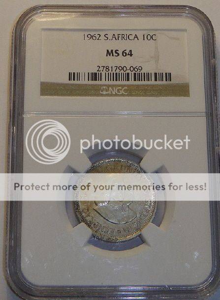 Republic of South Africa : Silver Ten Cent of 1962 : NGC graded MS64