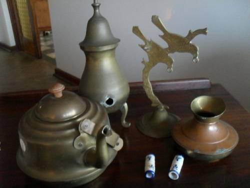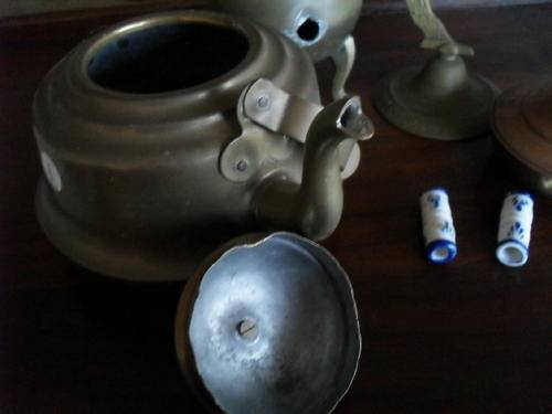 .. i think the two blue ceramic delf like tubes belong to the t/pots handle...no chips no cracks..