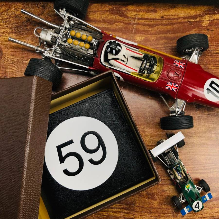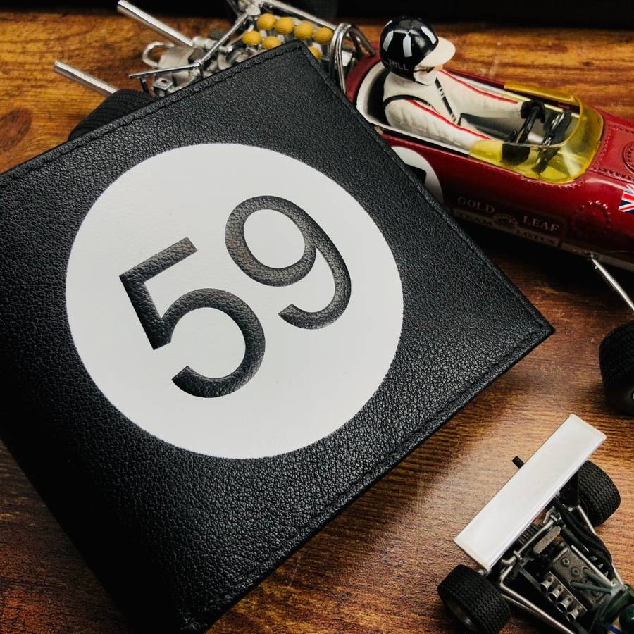 Our tribute to vintage British motorsports. The Tom & Fred London number "59". Made from butter-soft, genuine leather and engraved with our insignia.