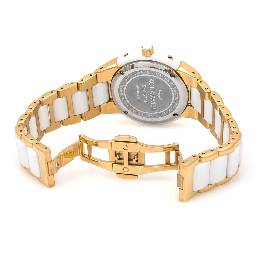 Retail: $1495 /R18,000.00 Aquaswiss Women Sea Star 2.25ct Topaz Watch with Ceramic Steel Band Retail: $1495 /R18,000.00 Aquaswiss Women Sea Star 2.25ct Topaz Watch with Ceramic Steel Band