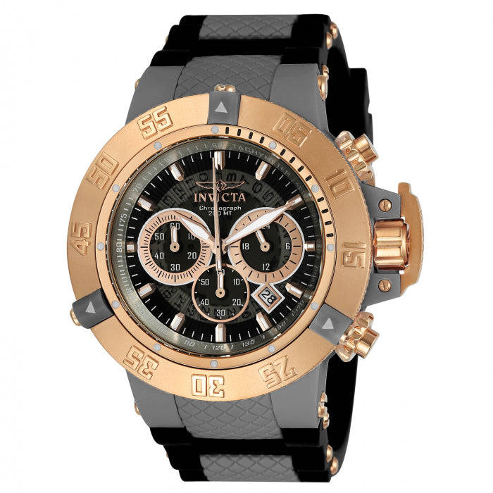Powered by a finely crafted Swiss Quartz movement. Featuring a stunning 50 millimeter case accented by a Gold, Grey tone Stainless Steel, Polyurethane band, it is the perfect accessory for function and style. Protected by a Flame Fusion crystal and water resistant up to 200 meters.