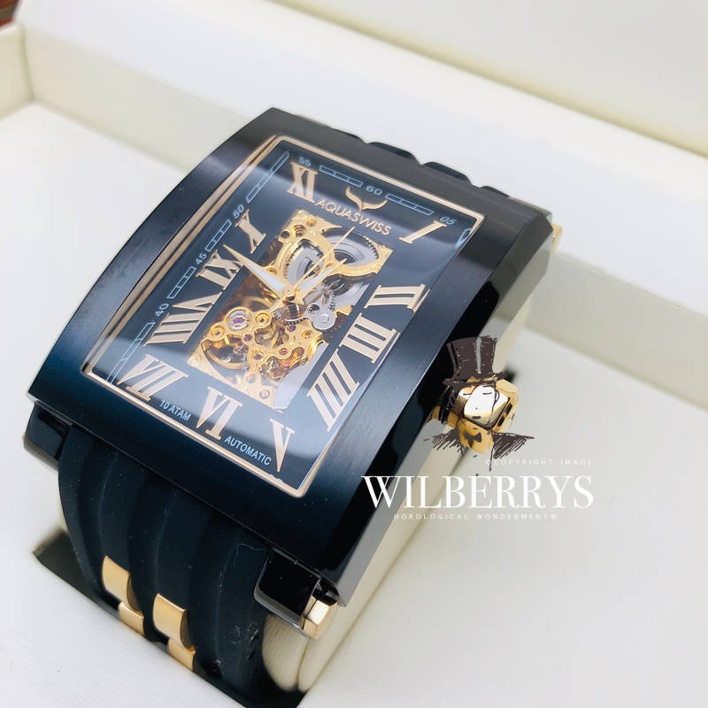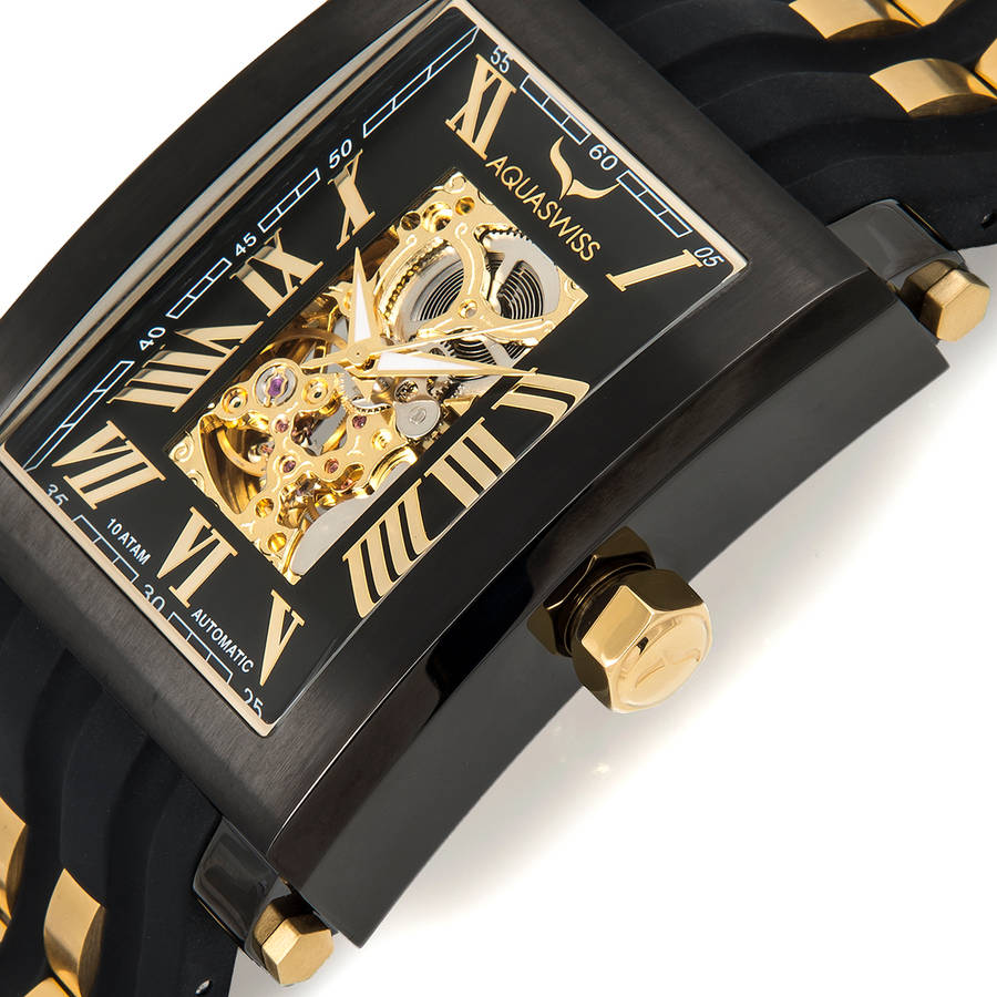 Want a sleek and reliable watch to go with your impeccable sense of style? The automatic A.Tanc Watch is just the thing. The smooth, rectangular stainless steel case features large Roman numeral markers along the dial, making it easy to read at any time of day. Crafted with high quality materials and distinctly designed, this piece will keep you perfectly punctual while putting your wrist on every style caster’s watch list.Introducing the AQUASWISS Collection, stunning watches that can be worn for sport, casual, or dress. All AQUASWISS timepieces are water resistant up to 10 ATM (330 feet), some models are waterproof. All AQUASWISS watches come with Swiss movements with or without chronograph. AQUASWISS watches are brand new and come in their original box with a manual and an optional 2-year warranty. AQUASWISS watches are truly high quality timepieces.
