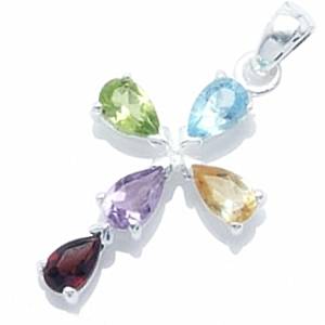 RETAIL: R2600.00 GENUINE 0.95 CARAT TOPAZ, PERIDOT, CITRINE, GARNET, AMETHYST CROSS PENDANT
