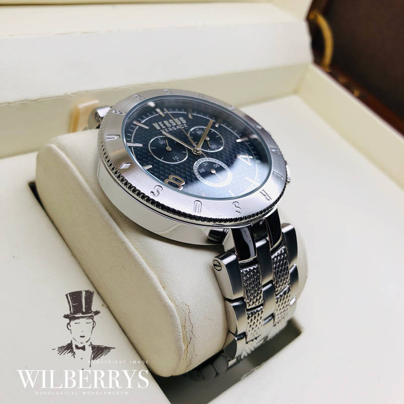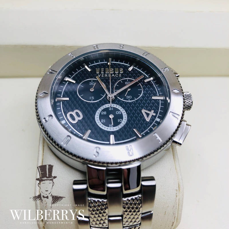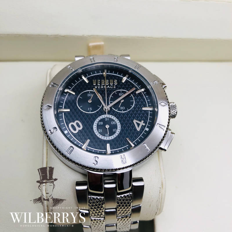 The New Versus logo with silver stainless steel strap has an extremely iconic look. A powerful chronograph for the Versus gentleman.