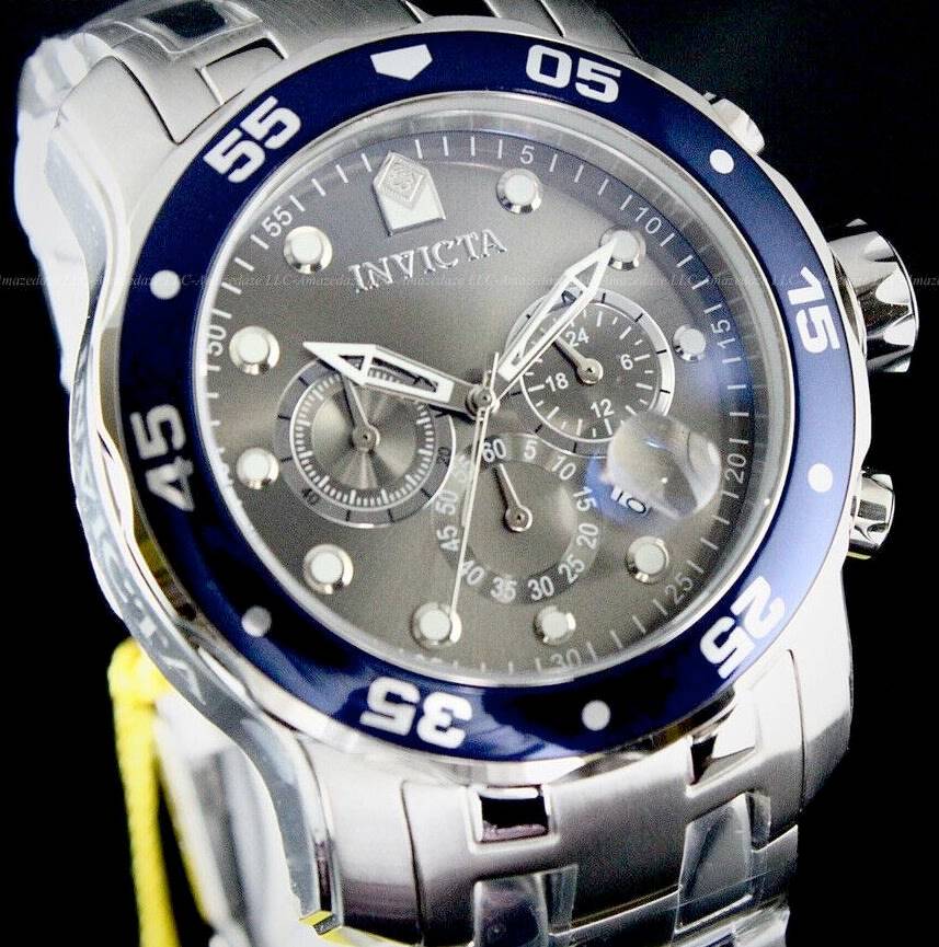 Features a stainless steel 49.5mm case, with a uni-directional rotating bezel, a grey dial and a scratch resistant mineral crystal.
