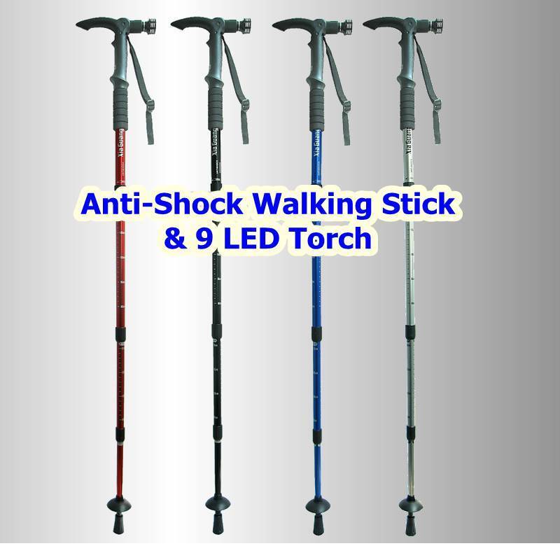 9 LED Light Anti-Shock Trekking Hiking Walking Stick Pole..