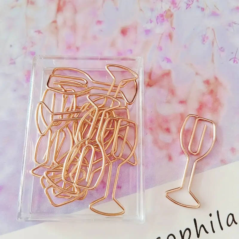 Rose Gold 10-Piece Goblet Shaped Paper Clips - Office Stationery Special Shaped Pins for Bookmarks Binders File Fixing