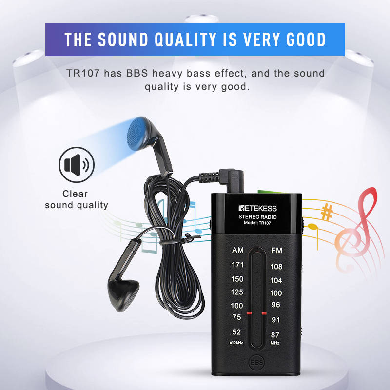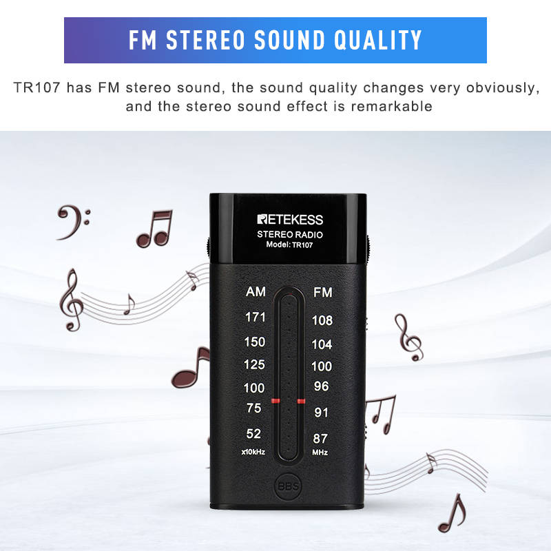 TR107 has FM stereo sound, the sound quality changes very obviously, and the stereo sound effect is remarkable