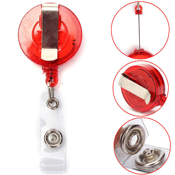 Retractable Pull Chain Badge Pass ID Card Holder Reel Recoil Key Ring Belt Clip