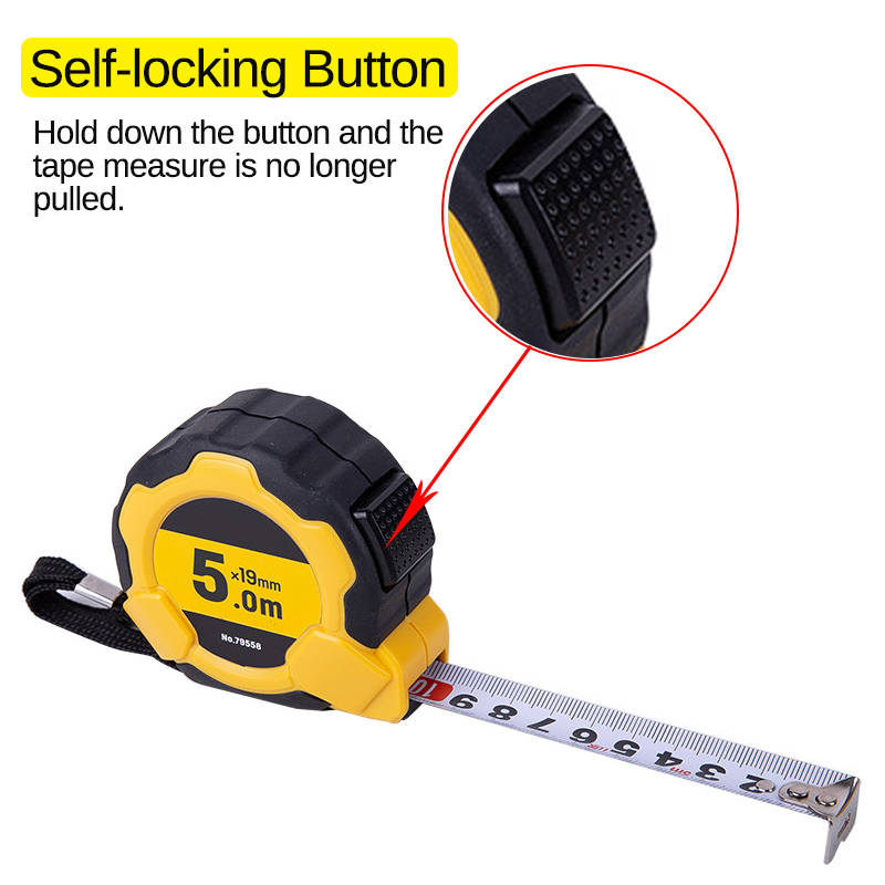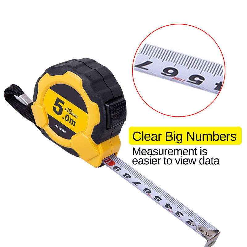 Tape Measure 5 M Self-locking Tape Measure High Precision Measuring Tape Telescopic Tape Measure Multi-function MeasurementDescription: 1. It Has Two Measurement Methods: Hook Quantity And Top Quantity. The Scale Is Accurate And Clear. 2. Measuring Range Is 5 Meters, Suitable For Routine Use. 3. With Self-locking Function, Easy To Use. 4.Widely Applicable, Ergonomic Design: Perfectly Fits Your Hand And Provides A Comfortable Grip. Anti-slip, Anti-deformation, And Wear-resistant Thick Rubber Sheath Prevent The Tape From Falling Damage. For Everyday Owners, Everyone Is Essential And Professional For Interior Designers, Carpenters, Metal Or Carpenters And Architects; Product Specifications: Size: 67*75*35mm Material: Metal Tape Measure Size: 5m*19mm Color: Yellow Package Includes: 1x Tape Measure