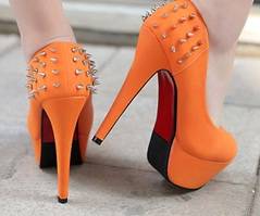Retro 13cm Pumps with Back Rivit Detail in Orange (size 2.5 - 6)