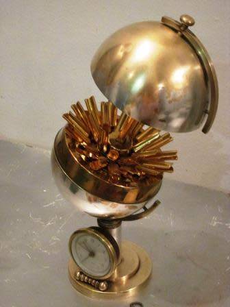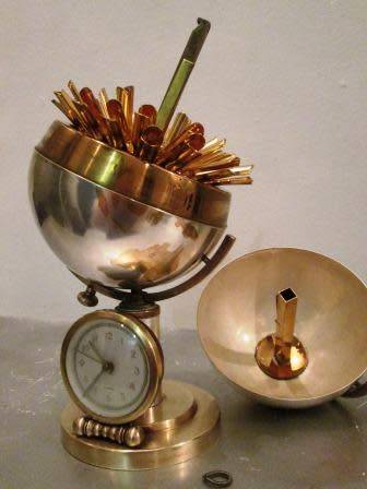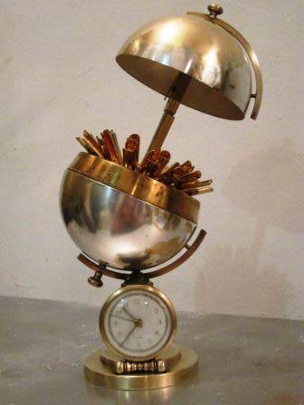 Retro 1950's German Made Globe Alarm Clock Cigarette Dispenser