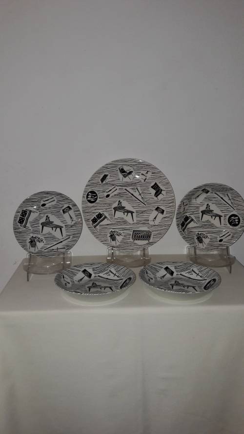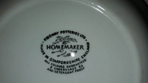 Offered for sale is a stylish Ridgway Staffordshire Homemaker series breakfast bowl (one of 3 available) designed by Enid Seeney in 1956 and retailed through Woolworths stores in the UK from 1957 onwards to the mid 1960's. This is an earthenware item with transfer printed decoration. The decorative motif features "ultra modern" home furnishings and utensils for dining/kitchens.