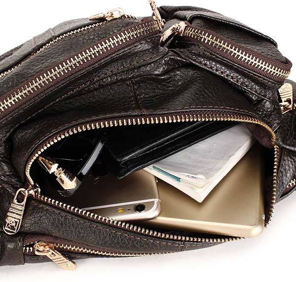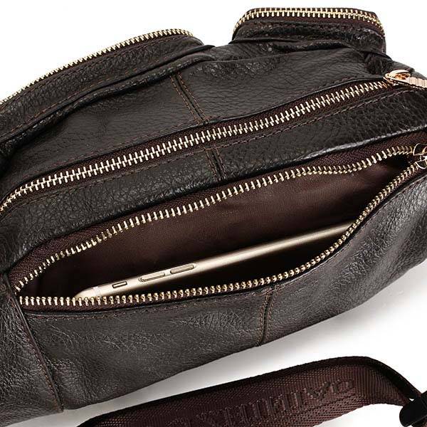 Retro 8 Pockets Men Women Genuine Leather Waist Bag Capacity Messenger Fanny Pack Bum Bag